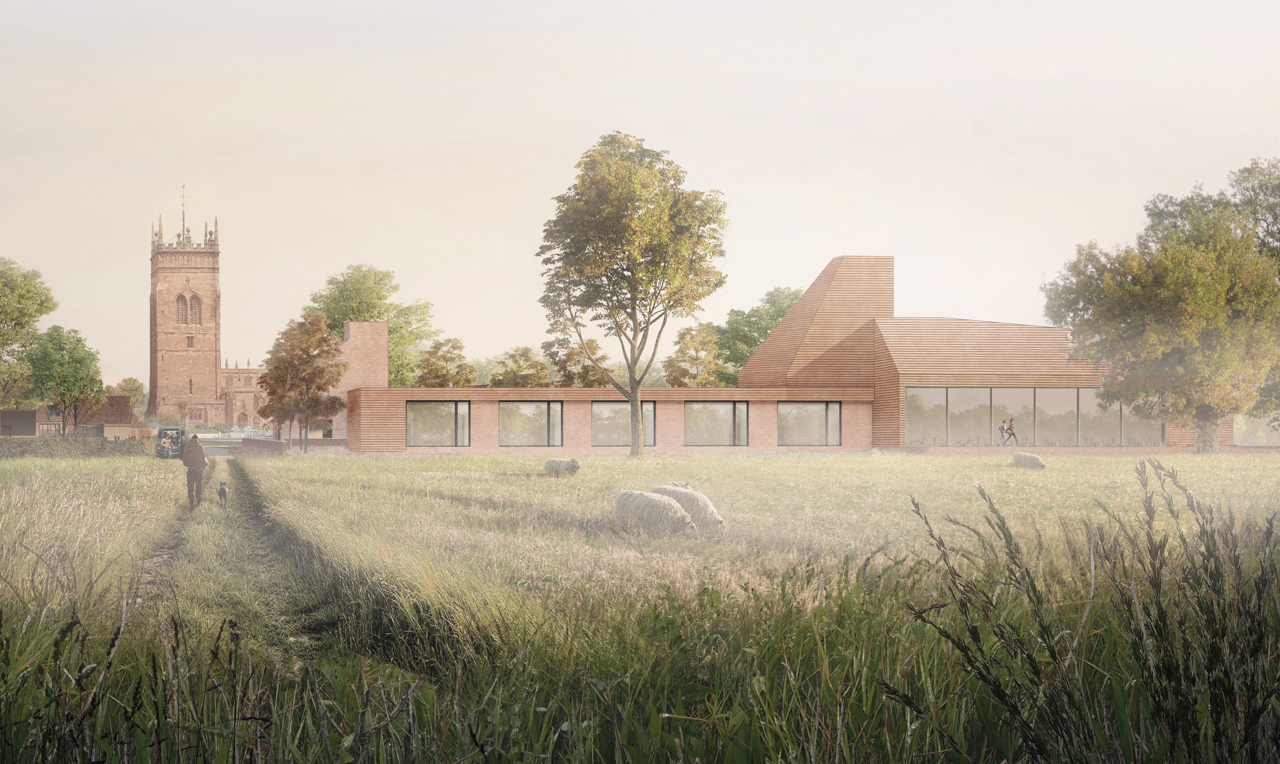 The roofscape, with its hierarchy of heights, responds to the tower of the Grade-I Listed St Mary's Church in the distance, dating back to the 12th century. A new public footpath cuts through the village northwards from the fields and creates a viewing corridor, including the church in the composition.